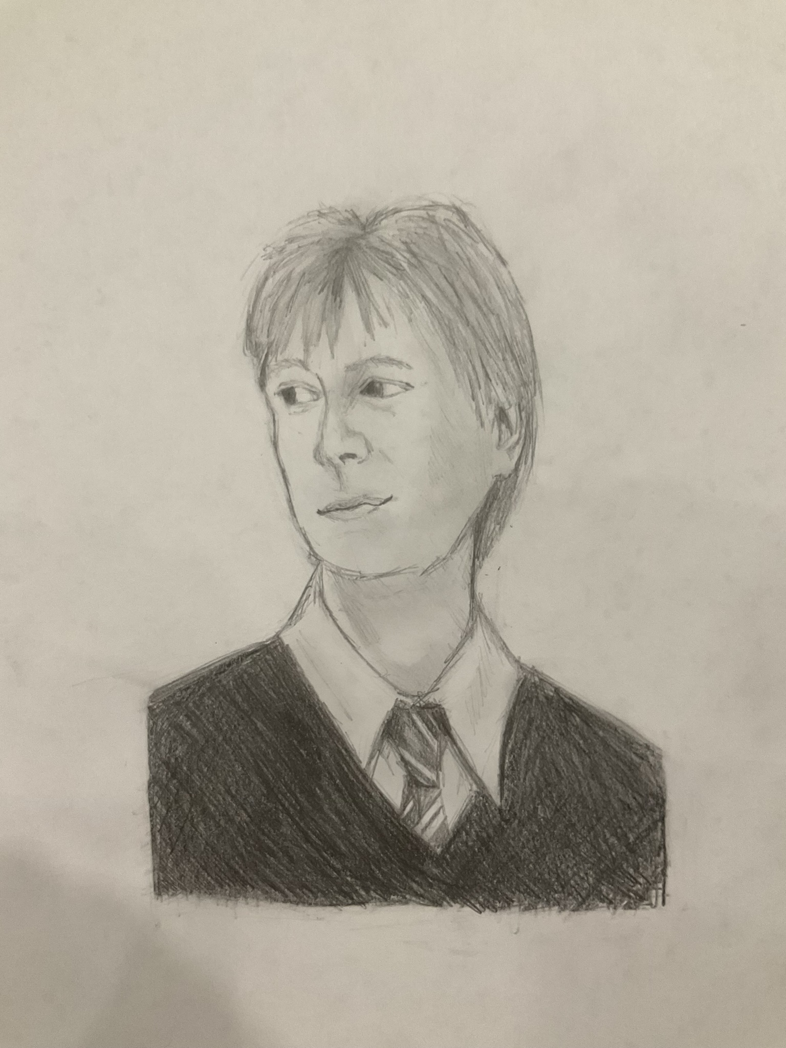 George Weasley from Harry Potter. Date: May 31, 2023 Medium: Pencil on paper. Description: George Weasley from Harry Potter. Category: Potter