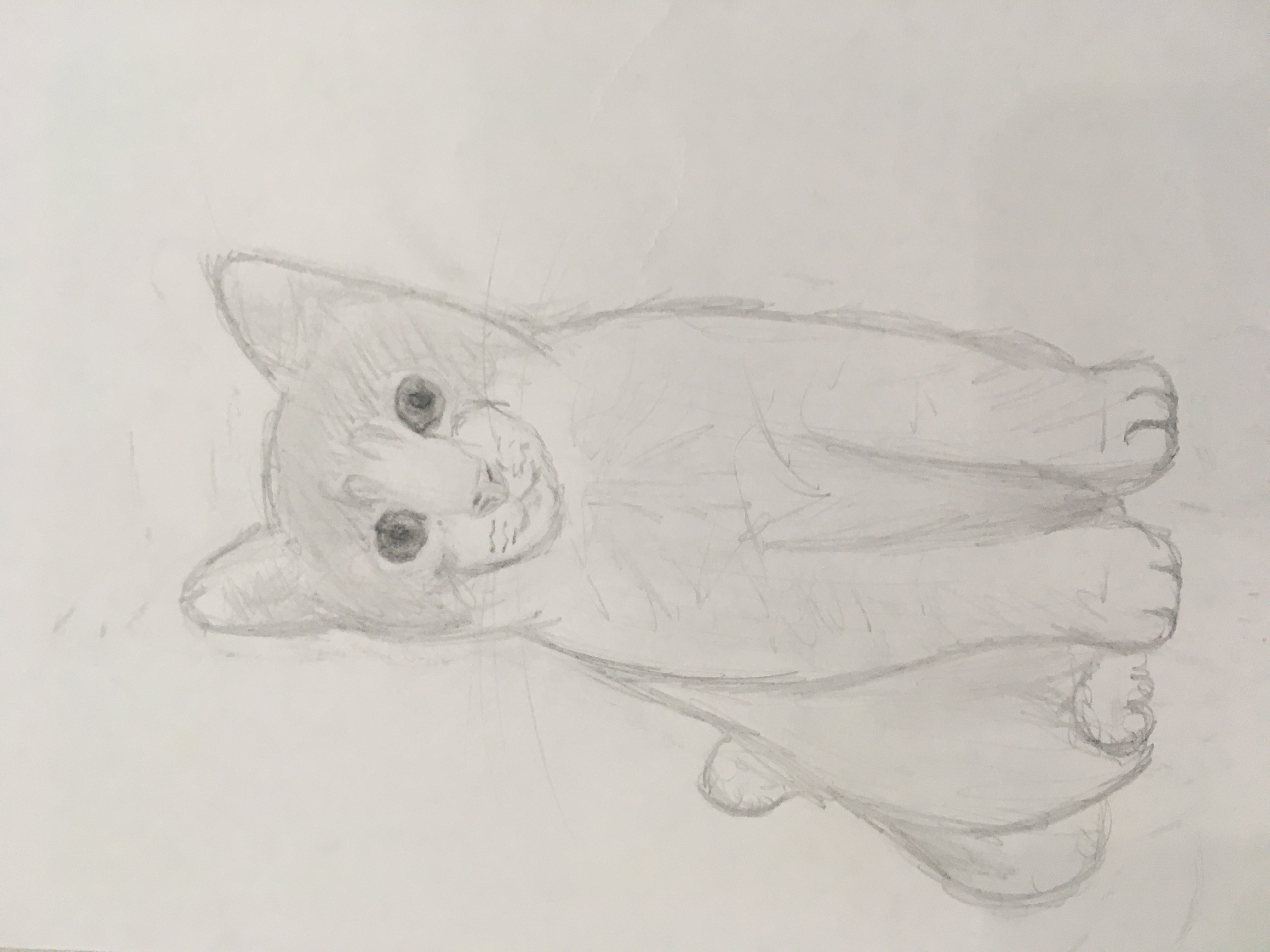 A kitten sitting. Date: December 28, 2021 Medium: Pencil on paper. Description: A kitten sitting. Category: Graphite, Animals (With Cats), Cats