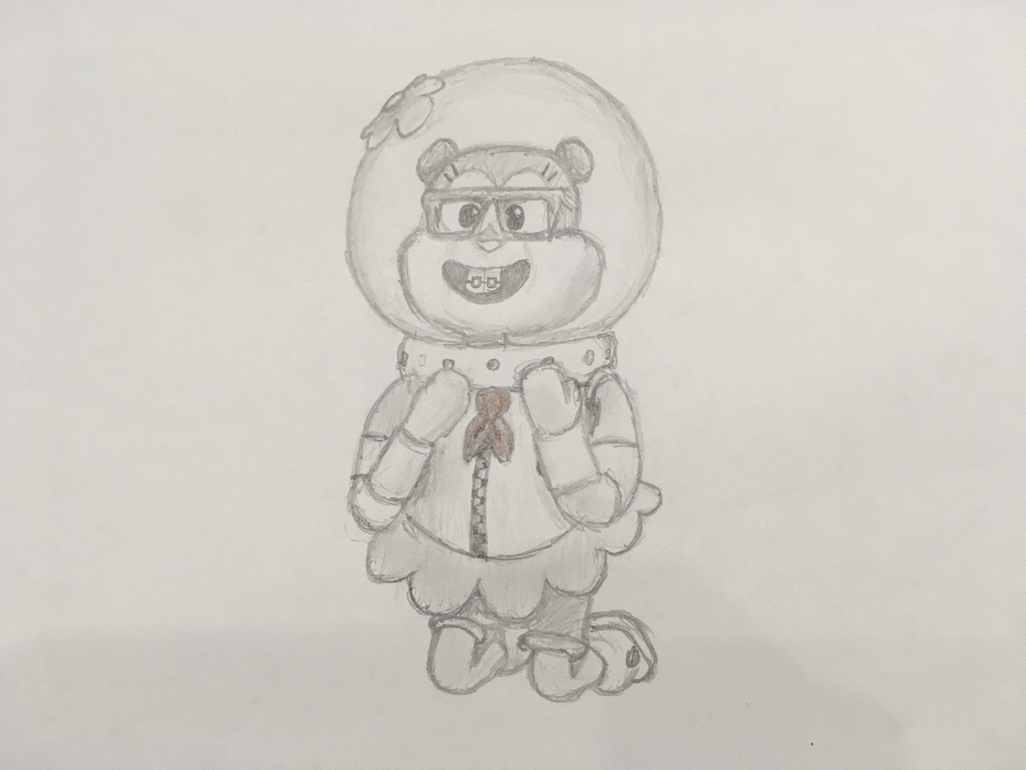 Sandy Cheeks from Kamp Koral. Date: December 31, 2021 Medium: Pencil on paper. Description: Sandy Cheeks from Kamp Koral. Category: Animals (Without Cats), Graphite, Animals (With Cats)