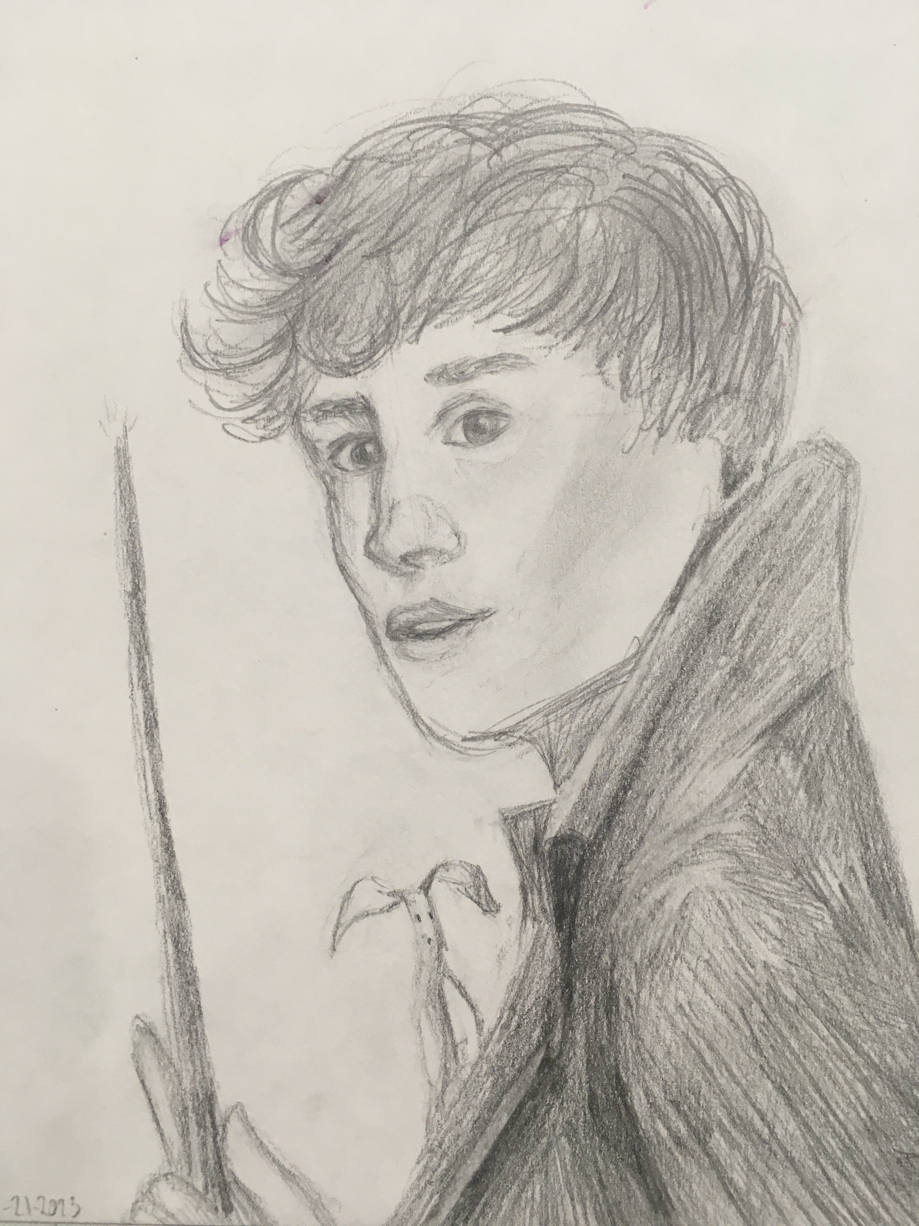 Newt Scamander from Fantastic Beasts. Date: May 21, 2023 Medium: Pencil on paper. Description: Newt Scamander from Fantastic Beasts. Category: Graphite, Potter