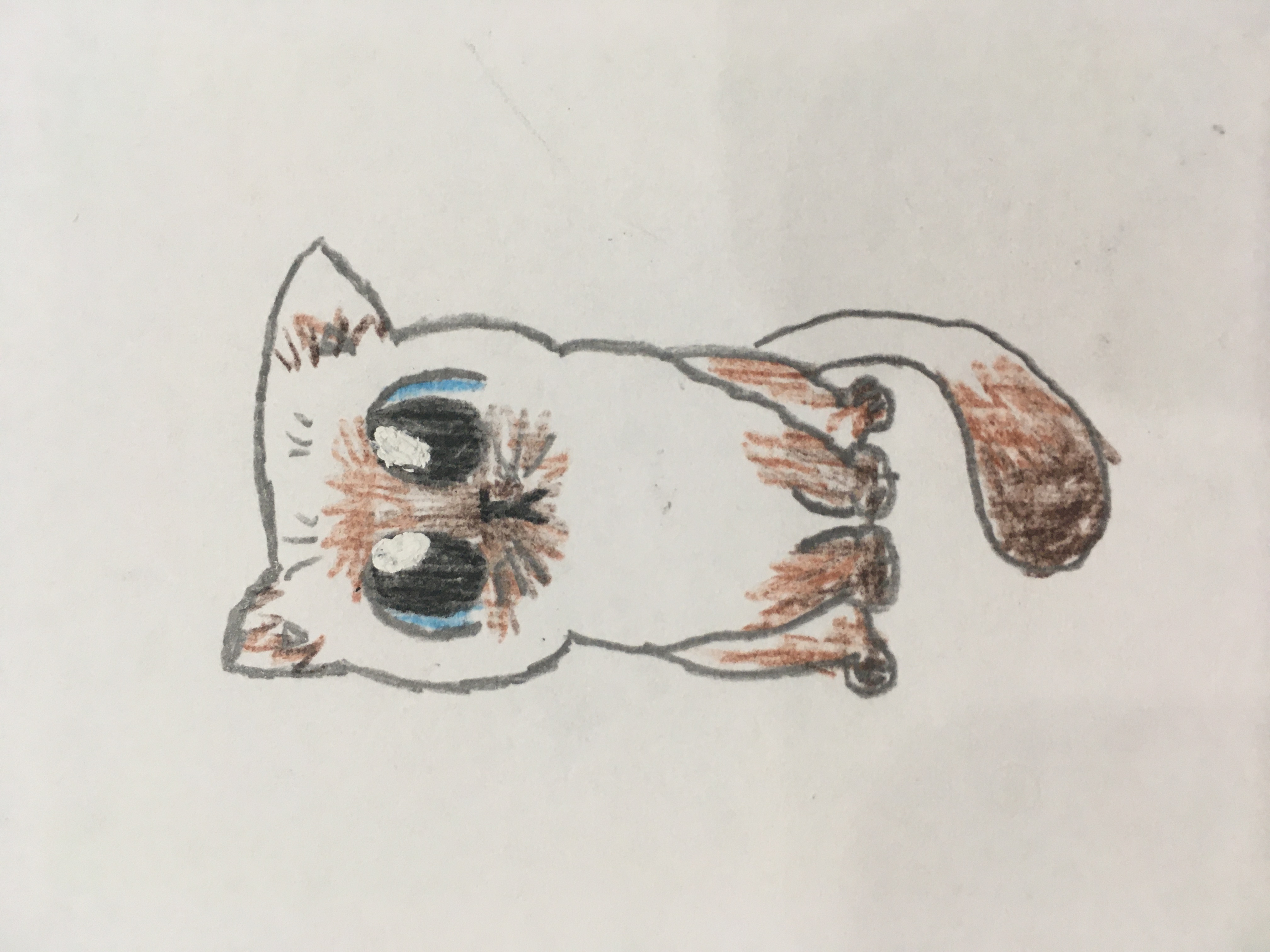 A small Siamese cat with blue eyes sitting. Date: January 14, 2022 Medium: Colored pencil on paper. Description: A small Siamese cat with blue eyes sitting. Category: Animals (With Cats), Colored Pencil, Cats